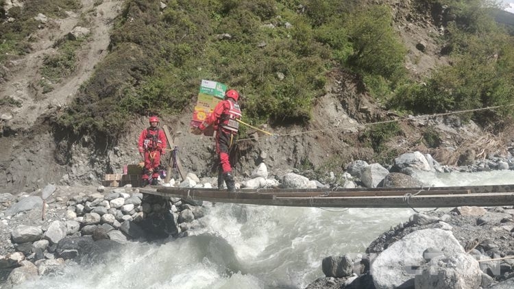 據(jù)了解,截至7月3日,日喀則森林消防救援大隊(duì)共運(yùn)送人員10000余人、解救被困群眾及民工178人、利用沖鋒舟輸送生活保障物資20993余件套、配合地方專家搭建橋梁2座、處理塌方累計6.5立方、搬運(yùn)受災(zāi)物資9000余件套、清理淤泥49平方米,用實(shí)際行動贏得了當(dāng)?shù)卣腿罕姷囊恢潞迷u。