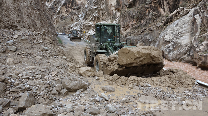 圖為川藏線波密縣境內(nèi)玉普鄉(xiāng)境內(nèi)泥石流受損道路