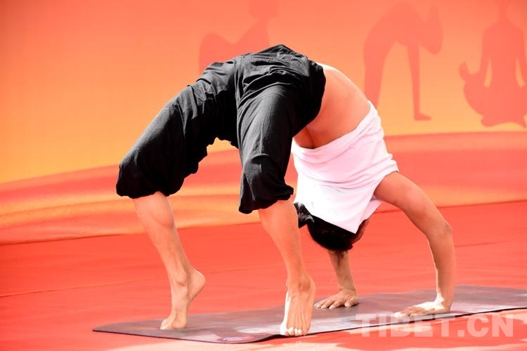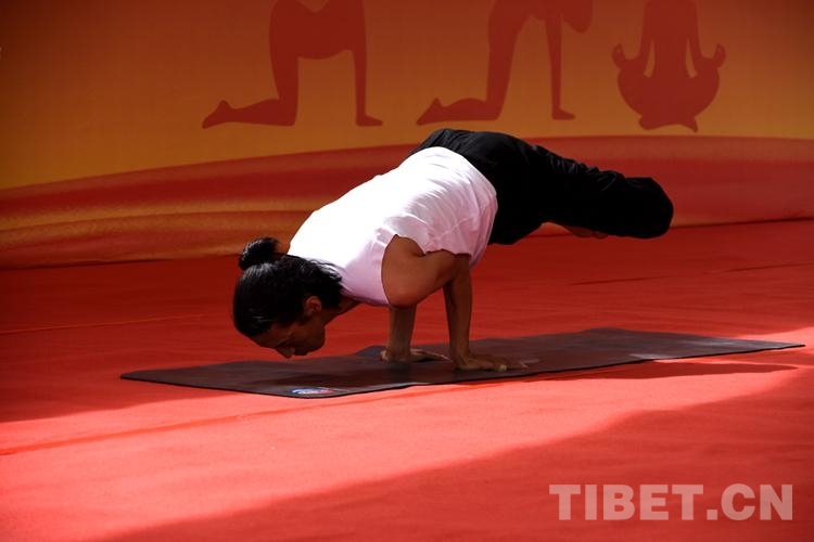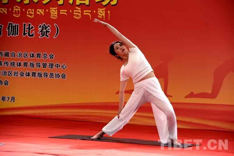 比賽中,來自西藏各地的40位瑜伽愛好者以柔韌的身姿表現(xiàn)出運(yùn)動(dòng)之美,以自信、歡愉的精神面貌展現(xiàn)新時(shí)代的西藏幸福生活。(中國(guó)西藏網(wǎng) 記者/次旦拉姆)