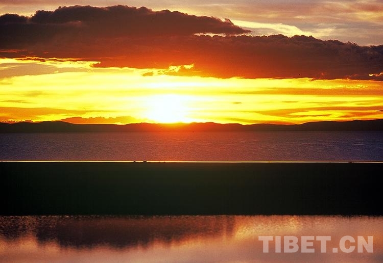 有時,黃昏從山頂籠罩下來,遠(yuǎn)處山邊的太陽將云霞染得一片金黃,而群山被柔曼的云霞一抹,變成了紫褐色。當(dāng)太陽隱沒在雪峰后邊時,那湛藍(lán)湛藍(lán)的湖面上便顯出黑黝黝的山脊,草原似乎沒有一點(diǎn)亮光,大地越發(fā)顯得安靜和神秘。幾乎在太陽落山的同時,東邊的月亮已帶著玫瑰色的光環(huán)從雪山后悄悄地升起,草原似乎沒有一點(diǎn)亮光,大地越發(fā)顯得安靜和神秘,幾乎在太陽落山的同時,東邊的月亮已帶著玫瑰色的光環(huán)從雪山后悄悄地升起,草原頃刻間又有了亮光。無人區(qū)的月亮是出奇的大、出奇的圓,它高掛在藍(lán)色的天空,冷清清地向下傾瀉光輝,那光輝傾斜到高高的雪山上,傾瀉到朦朦的草原上,傾瀉到浮動的牛羊身上……于是,草原上的一切又變得活生生的了。