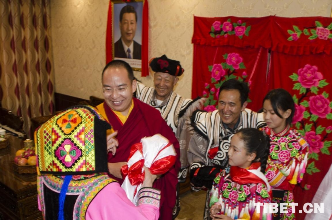 調(diào)研期間,班禪來到松潘縣進(jìn)安鎮(zhèn)居民王永明的家中。班禪在一家人的圍繞中,仔細(xì)詢問家庭收入、生活情況并親切地向他家的小女兒說:“要繼續(xù)努力學(xué)習(xí),將來努力報效祖國,好不好?”班禪隨后表示,現(xiàn)在的生活越來越好,黨和政府為大家提供了很多機(jī)會,機(jī)遇多、機(jī)會多。能趕上這么好的一個偉大時代,也是我們大家的福報。