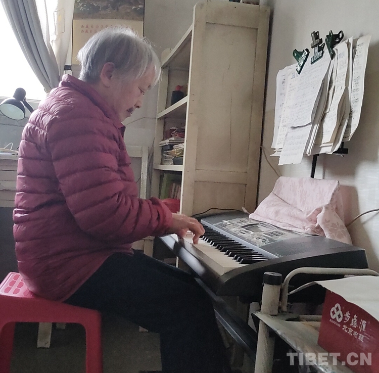 鄧親和,四川省樂山市犍為縣人,出生于1931年,十八軍52師文工隊戰(zhàn)士。1950年,鄧親和19歲,正值高三,成績優(yōu)異的她不顧家人的勸阻,毅然放棄了繼續(xù)讀書的機會,踏上了解放西藏的征途,從此在雪域高原上留下了人生最寶貴的青春足跡。初見鄧老師,她親切和藹的樣子,給我留下深刻的印象。老人雖然退休多年,但是她的生活仍然格外豐富。據(jù)老人講,她的作息時間比較規(guī)律,堅持做八段錦鍛煉身體,自己做家務,空閑時間還會看書看報、提筆練字,或是彈彈電子琴,唱唱歌等等,生活豐富多彩。此刻,我從她的身上看到了年輕時鄧親和的神態(tài)與風采?;厥啄嵌螎槑V歲月,翻雪山、過草地、穿峽谷、涉冰河……面臨高山缺氧的生命危險,趟越急流冰河的刺骨鉆心,爬冰臥雪、忍饑耐寒,遇艱險不畏其險,歷困難不以為難,樁樁件件好似一首首雋永的絢麗詩篇,常在她記憶里回蕩,令人難忘。