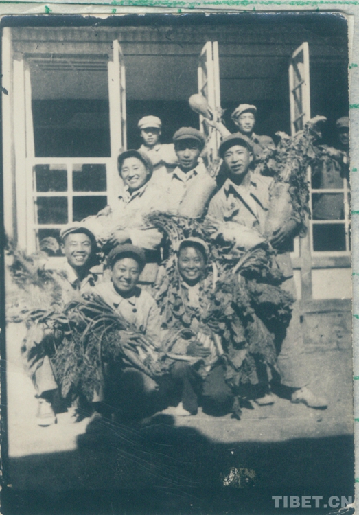 入城后,文工隊分別住在江孜城郊強查洞幾處民房里。初到江孜,后方給養(yǎng)一時運不上來,蔬菜等主副食又得不到有效供給,西藏只有土豆、元根,他們還不能隨便采購。西藏工委和十八軍黨委遵照毛主席“進軍西藏,不吃地方”的指示,提出“搞好生產(chǎn)是進藏部隊長期的一項中心任務”,文工隊同分工委全體工作人員一道在帕拉開墾荒地、播種糧食。天寒地凍又缺少農(nóng)具,用鐵锨鏟鏟不動,用十字鎬挖,一鎬下去,直冒火星。同志們想方設法烤凍土,翻起一塊一塊像鐵板一樣的凍土,晾在太陽下曬,然后再一鎬一鎬的砸碎、耙平,沒有耕牛,男同志就扛起繩拉犁,女同志平地耙地。江孜海拔4000米以上,平日里都缺氧,此時再加上勞累更是頭暈腦脹,上氣不接下氣,可是他們充分發(fā)揚“不怕苦不怕累”的精神,終于開出一片荒地、撒下種子、收獲了自己種下的糧食,做到了一部分自給,在西藏群眾中產(chǎn)生了很好的影響。文工隊還在住地附近開辟了一塊地種菜,用實際行動徹底粉碎了西藏上層反動集團妄圖用糧食困住解放軍進而餓走解放軍的美夢。