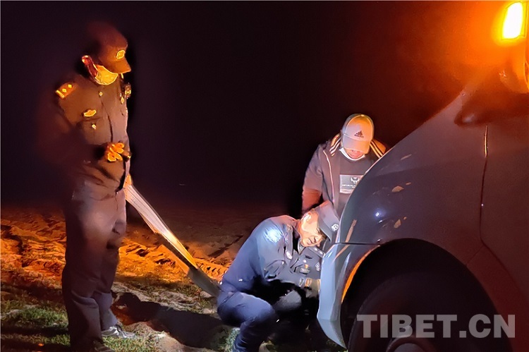據了解,3名游客在自駕游玩過程中,想前往拉昂錯湖邊停留一會再前往縣城。由于天黑視線模糊,在湖邊行駛時誤入沙地,立即開始倒車自救,但由于沙土松軟,車輛左右搖擺,越陷越深。在觀察、詢問無人員受傷或身體不適后,救援民警立即開展救援工作。