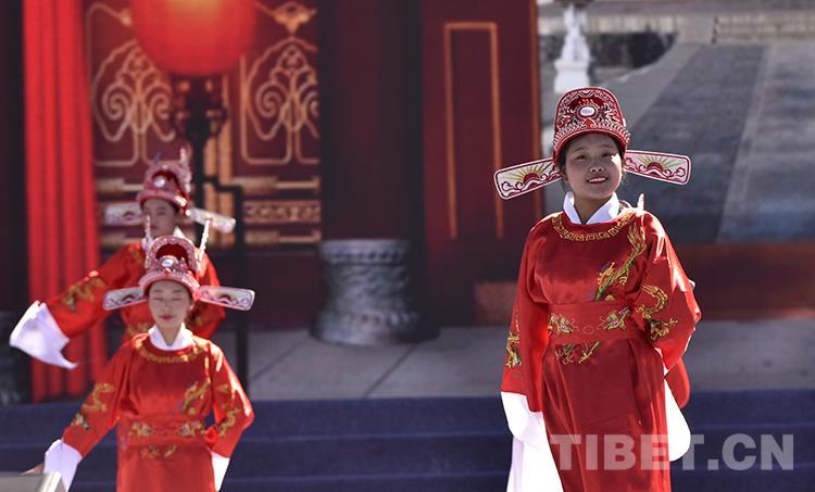 圖為2021雅礱文化旅游節(jié)開幕式文藝演出中,山南市第二高級中學生們表演黃梅戲《女駙馬》選段 攝影:王媛媛