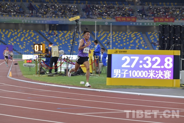 在田徑項(xiàng)目男子10000米決賽中,西藏自治區(qū)選手多布杰以28分35秒24的成績力壓群雄,勇奪冠軍,為西藏奪得本屆全運(yùn)會(huì)第二金,蟬聯(lián)兩屆全運(yùn)會(huì)該項(xiàng)目的冠軍。