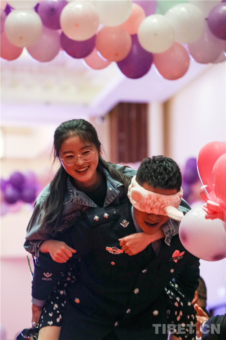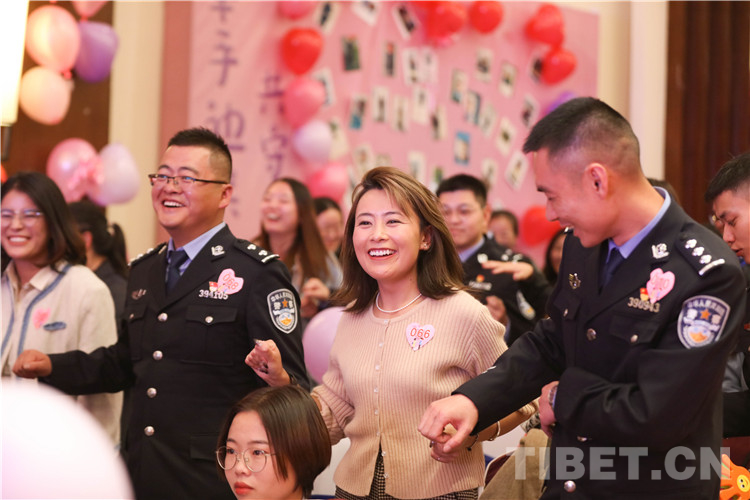 活動過程中,總站形象宣傳片《我是誰》,向女嘉賓們展現(xiàn)了西藏移民管理警察的職業(yè)特點,使女嘉賓對民警工作職責產(chǎn)生了初步的認識。在主持人的引導下,精彩的才藝展示和豐富的游戲環(huán)節(jié)很快將現(xiàn)場氣氛推向一個接一個的高潮。互動游戲“牽手牽愛”“心有靈犀”“守護愛情”“唯愛接力”通過聆聽詩句抓緊手指、借助比劃你問我答,相互協(xié)助完成任務等方式增進了男女嘉賓之間的了解和默契,促進了相互之間更好交流。男女嘉賓才藝表演和日喀則邊境管理支隊1753樂隊送上的精彩曲目,令活動現(xiàn)場青春洋溢。最終,18對男女嘉賓互生情愫,牽手成功,36對交換聯(lián)系方式,開啟更加深入的幸福交流。