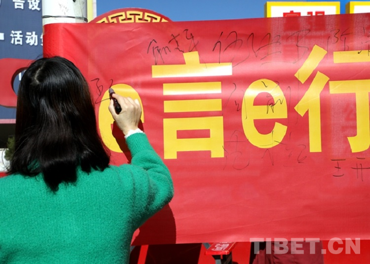 圖為活動(dòng)現(xiàn)場(chǎng)懸掛的橫幅標(biāo)語(yǔ) 攝影:拉珍