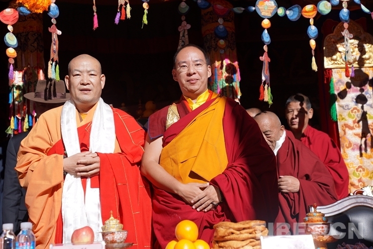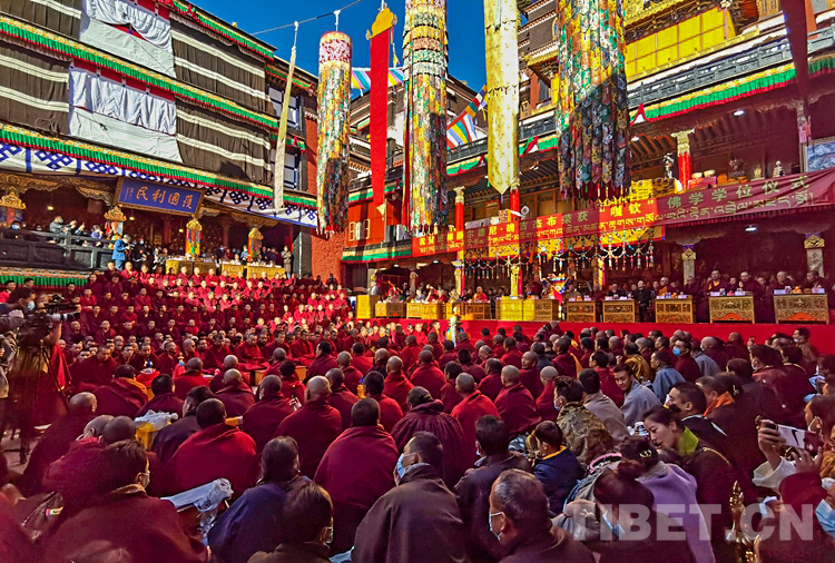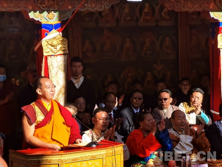 旦科代表西藏自治區(qū)黨委、政府講話:考取“嘎欽”佛學(xué)學(xué)位,是班禪額爾德尼?確吉杰布精進(jìn)學(xué)識(shí)、弘法利生畢生事業(yè)中的關(guān)鍵環(huán)節(jié),是二十五年來(lái)勤學(xué)苦修、?;劬阍龅闹苯芋w現(xiàn),是在宗教修為上全面成熟的重要標(biāo)志,更是習(xí)近平總書(shū)記和黨中央教育培養(yǎng)的重大成果。這是扎什倫布寺的一大喜事,是藏傳佛教界的一大盛事,是寺廟僧尼、信教群眾期盼已久的一件大事。