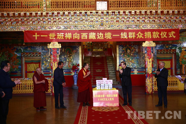 秉承佛教慈悲濟世精神,班禪向來心系蒼生、善信天下。在考取“嘎欽”佛學學位后,班禪決定將社會各界所贈與的鼓勵禮金回饋社會,于10月29日在日喀則市德慶格桑頗章捐贈100萬元,用于幫助西藏邊境一線群眾提升和改善生產(chǎn)生活。西藏自治區(qū)黨委常委、統(tǒng)戰(zhàn)部長旦科作為代表接受捐贈。