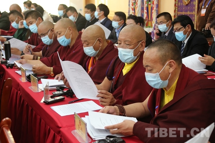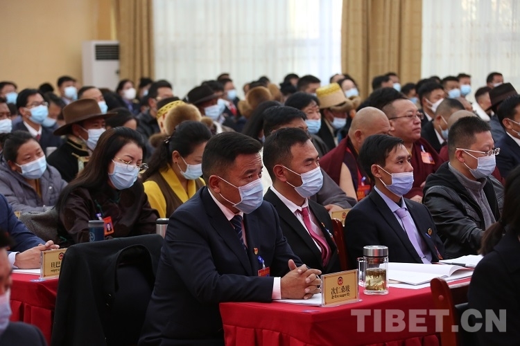圖為政協(xié)委員聽取政協(xié)第十一屆拉薩市委員會常務委員會向大會所作的工作報告 攝影:王佳豪