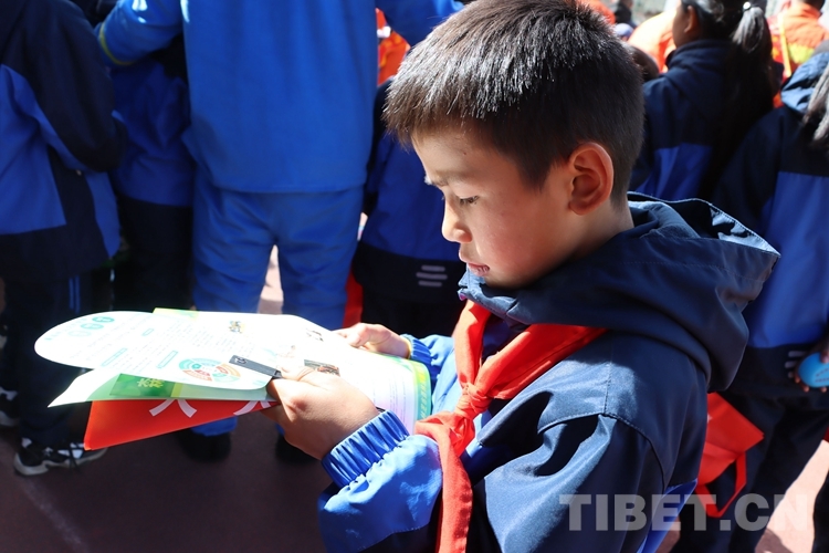 該小學(xué)相關(guān)負(fù)責(zé)人表示,通過森林火災(zāi)安全宣傳教育活動,進(jìn)一步提升了全校師生的森林防火意識,提高了大家保護(hù)生態(tài)的安全意識。圖為小學(xué)生閱讀消防員發(fā)放的宣傳冊 (中國西藏網(wǎng) 通訊員/張林)