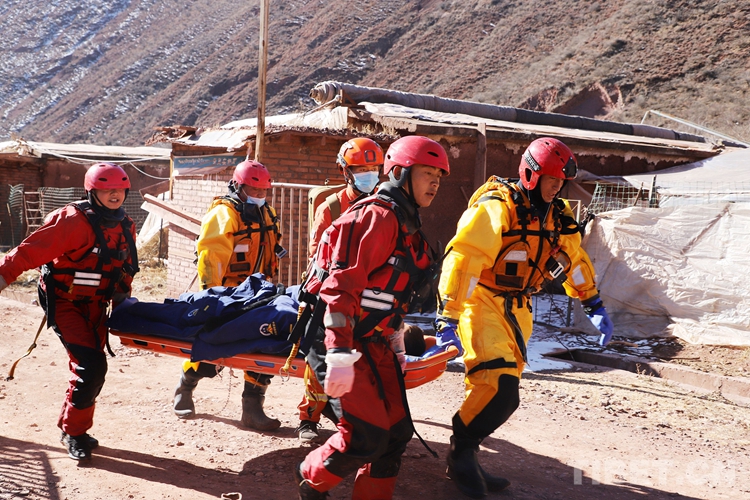 圖為醫(yī)療救護(hù)組及時(shí)對(duì)被救人員做好防寒保暖工作
