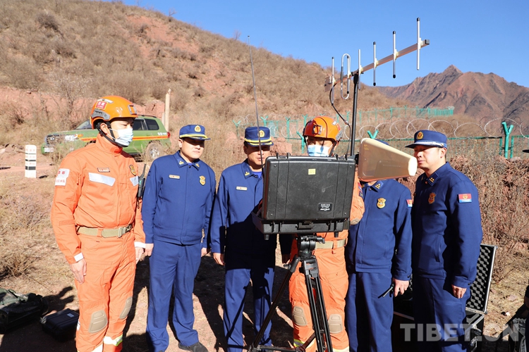 圖為貢覺(jué)縣駐防分隊(duì)救援人員攜裝匍匐前進(jìn)