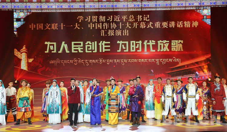 12月19日,“為人民創(chuàng)作 為時代放歌——西藏拉薩學(xué)習(xí)貫徹習(xí)近平總書記在中國文聯(lián)十一大、中國作協(xié)十大開幕式上的重要講話精神匯報演出”在西藏自治區(qū)拉薩市盛大開演。拉薩市文藝界代表和各族各界干部群眾歡聚一堂、載歌載舞,唱出新時代的旋律、舞動新時代的風(fēng)采,把新時代的贊歌傳遍古城拉薩、獻給各族群眾。