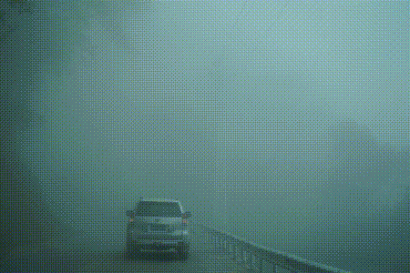 再次回眸,此時(shí)白雪墨林好似一幅水墨畫(huà),盤(pán)山公路幾乎隱沒(méi)于漫天云霧之中。