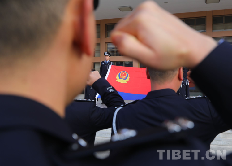 圖為林芝邊境管理支隊(duì)機(jī)關(guān)開展向警旗宣誓活動 攝影:姜凱峰