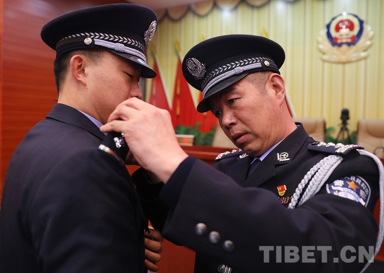 中國西藏網(wǎng)訊 “接國家移民管理局2021年12月24日《關(guān)于授予和晉升計(jì)江飛等同志人民警察警司警銜的命令》,以下7名同志授予一級警員警銜……”1月10日,西藏自治區(qū)林芝邊境管理支隊(duì)在第二個(gè)中國人民警察節(jié)這個(gè)特殊的節(jié)日里,為92名民警晉升和授予人民警察警銜,進(jìn)一步增強(qiáng)了民警的責(zé)任感、使命感,激勵廣大民警投身于偉大的移民管理事業(yè)。