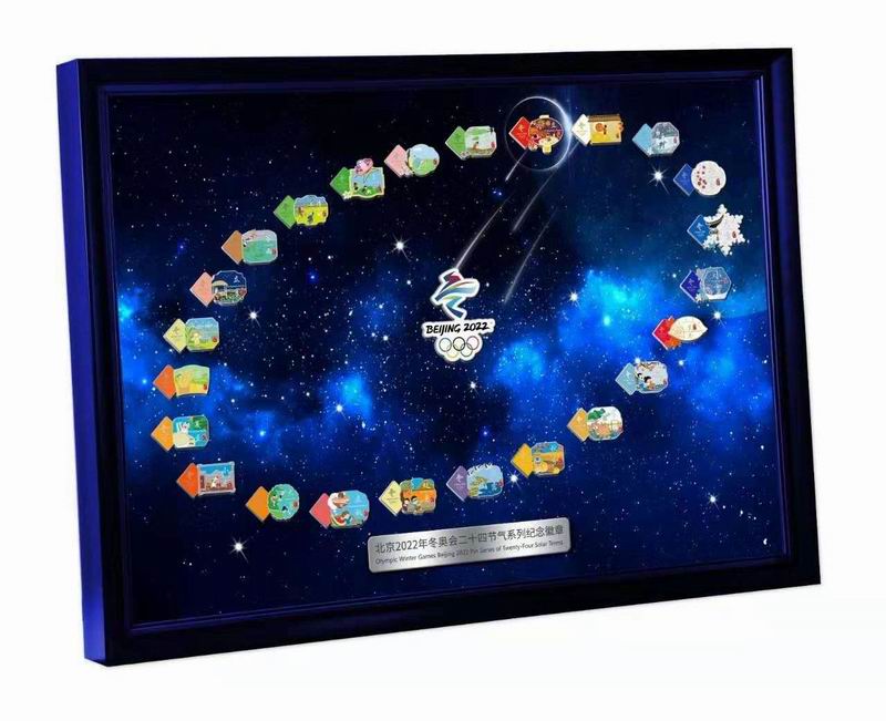 圖為全套“北京2022年冬奧會二十四節(jié)氣系列紀念徽章”與專用相框 圖片來源:北京冬奧組委官方網(wǎng)站