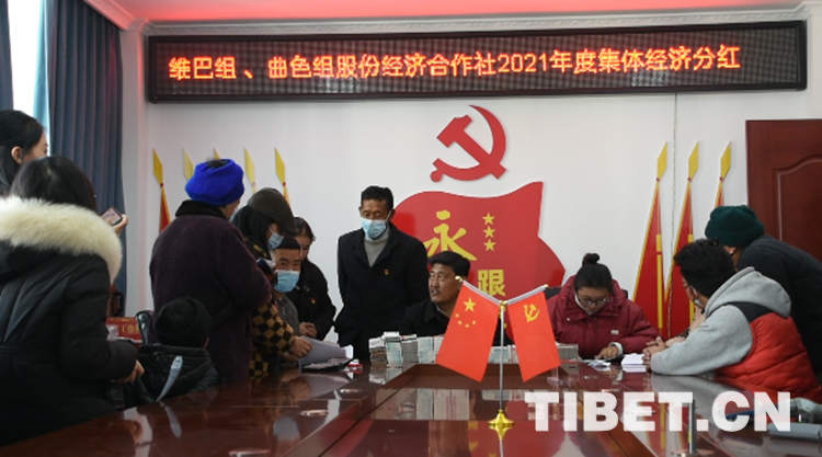 中國西藏網訊 在藏歷新年來臨之際,2月23日,西藏自治區(qū)拉薩市城關區(qū)奪底街道維巴村維巴組、曲色組股份經濟合作社2021年度集體經濟分紅,399戶共發(fā)放530650元分紅資金。