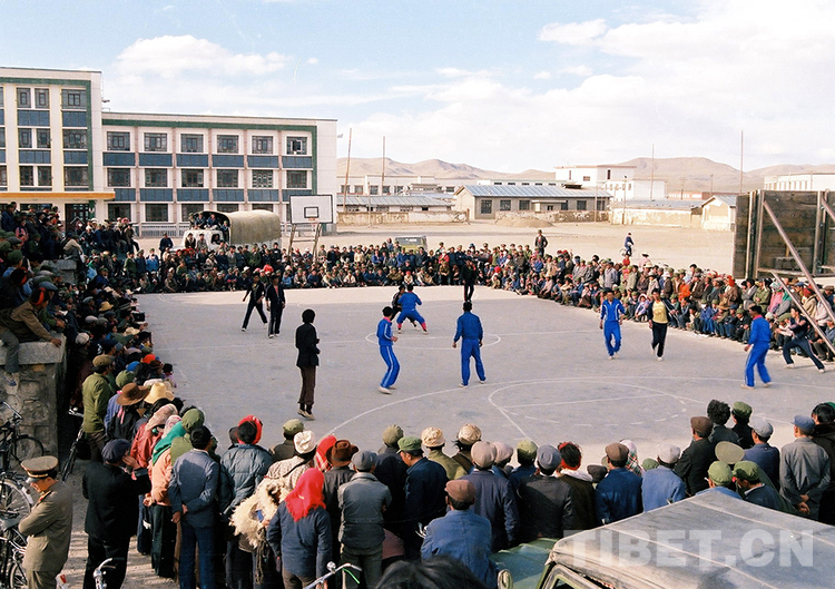 這是在藏北高原首府那曲鎮(zhèn)進(jìn)行的一場(chǎng)籃球比賽(唐召明1987年攝)