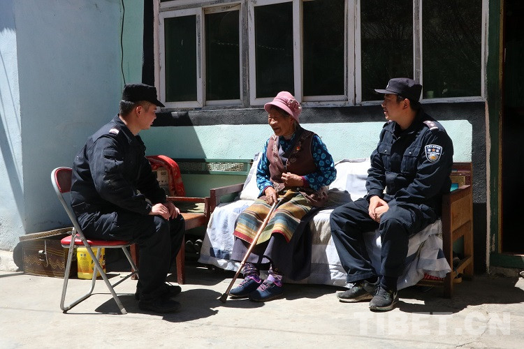 2021年6月,背崩邊境派出所的民警在日常的下鄉(xiāng)走訪中,發(fā)現(xiàn)了白瑪央金一家的窘境——丈夫不在,白瑪央金體弱多病干不了農(nóng)活,小女兒在外省讀大學(xué)需要學(xué)費(fèi)、三個(gè)孫兒到了要去幼兒園的年紀(jì)、兩個(gè)兒子每天在農(nóng)田里忙碌卻收入淺薄,一大家子的壓力全部都?jí)涸谶@個(gè)老婦人身上,讓白瑪央金喘不過(guò)氣來(lái)。派出所黨支部針對(duì)他們家的情況,決定聘請(qǐng)白瑪央金老人其中的一個(gè)兒子達(dá)瓦平措為派出所的輔警,這樣達(dá)瓦平措既能照顧到家里的老人,也能有一份穩(wěn)定的收入緩解家里的壓力。