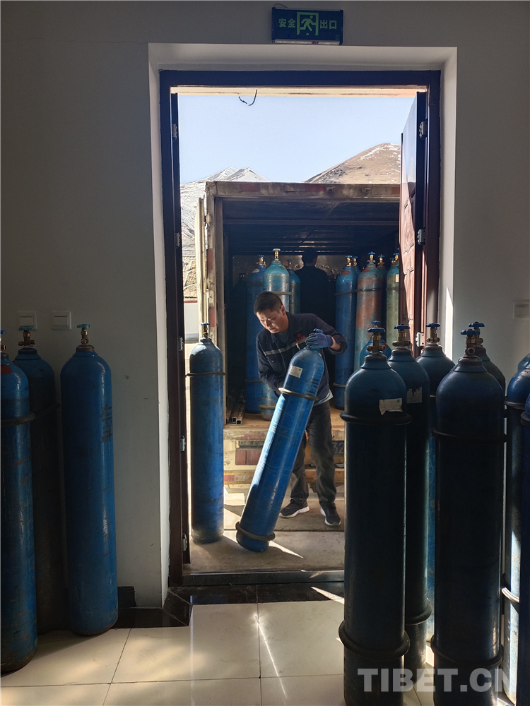 到達站區(qū)后,奎萬祥還會為職工提供“送貨上門”的服務,挨個把氧氣罐送到每一間房間和辦公室。有的辦公樓和職工宿舍不止一層高,一樓還可以靠工具,二樓則需要奎萬祥“賣力氣”了??钢?5公斤裝重的氧氣罐上樓,奎萬祥有自己的秘訣——咬牙憋氣和一鼓作氣,他說:“這么高的海拔,如果中途歇下來換氣,氣息和力氣很可能會接不上”。送完氧氣罐,奎萬祥還要把空的氧氣罐再帶回車上,整個過程往往會讓他精疲力盡。