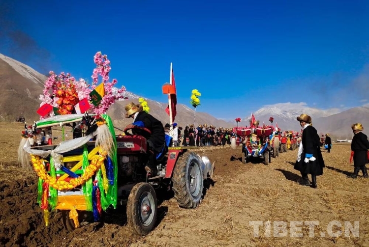 據(jù)悉,儀式當(dāng)日上午,村民們會(huì)身著節(jié)日盛裝,歡聚在田間地頭、載歌載舞隆重舉行春耕春播儀式?;顒?dòng)現(xiàn)場(chǎng),姑娘們舉起手中的切瑪、青稞酒、人參果為犁手們唱歌敬酒,在祝福的歌聲中,開(kāi)啟春耕“第一犁”。在西藏,過(guò)去是牦牛耕地,如今,隨著農(nóng)業(yè)科學(xué)化發(fā)展,現(xiàn)在農(nóng)耕都用現(xiàn)代化的拖拉機(jī)“鐵?!备亍R话慵獣r(shí)一到,一個(gè)個(gè)犁手頭頂金黃圓筒帽,身穿氆氌藏裝駕著一輛輛插著五星紅旗,系著潔白哈達(dá)的“鐵?!本従忨傔M(jìn)田間,一片片沃土隨著鐵犁慢慢翻開(kāi),婦女們?cè)诤竺娌ト銮囡挤N……在田埂上形成一道最靚麗的風(fēng)景線,好不壯觀!