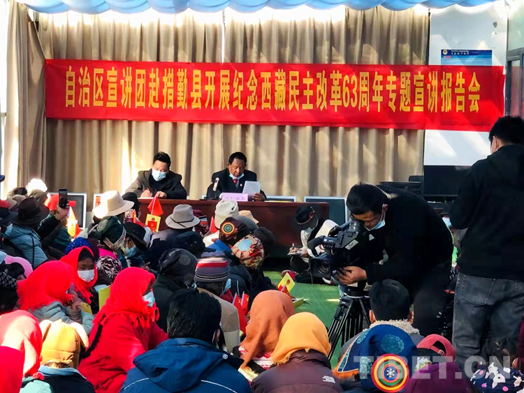 中國(guó)西藏網(wǎng)訊 3月26日,西藏自治區(qū)宣講團(tuán)在阿里地區(qū)措勤縣扎日南木措社區(qū)黨群活動(dòng)中心開(kāi)展紀(jì)念西藏民主改革63周年專(zhuān)項(xiàng)宣講。扎日南木措社區(qū)黨群活動(dòng)中心約200多名群眾參加。