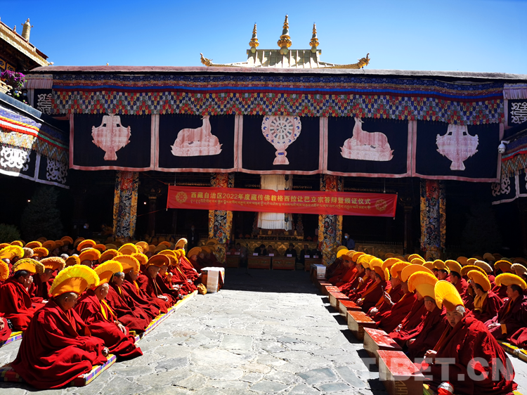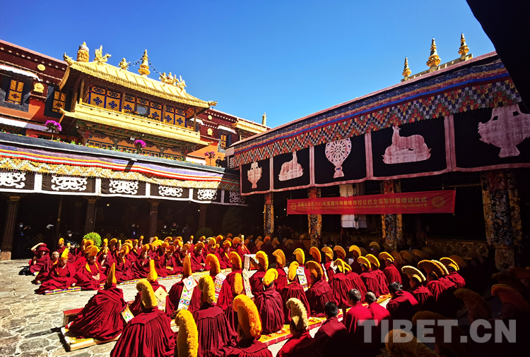 中國西藏網訊 4月2日,一年一度的藏傳佛教學經僧人考核晉升格西拉讓巴學位立宗答辯暨頒證儀式在拉薩大昭寺釋迦牟尼主殿前舉行。