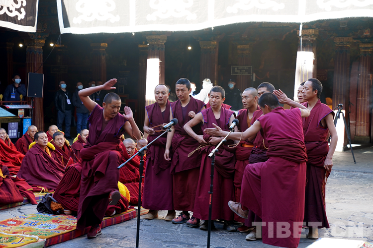 圖為西藏自治區(qū)2022年度藏傳佛教學經僧人考核晉升格西拉讓巴學位立宗答辯暨頒證儀式現(xiàn)場 攝影:拉姆
