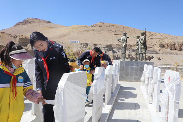 中國(guó)西藏網(wǎng)訊 青松翠柏守英烈,春風(fēng)百花寄哀思。在清明節(jié)來臨之際,為傳承英烈遺志,弘揚(yáng)英烈精神,4月2日,西藏普蘭出入境邊防檢查站民警與普蘭縣九年一貫制學(xué)校少先隊(duì)員們一起來到普蘭縣烈士陵園開展“清明祭英烈”活動(dòng)。