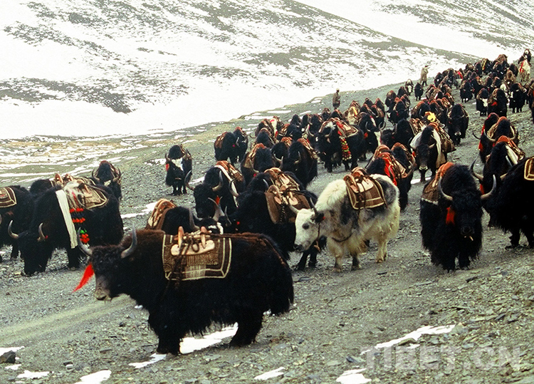 這種特殊地區(qū)的馱牛和馱羊運輸習俗,是當地牧民世世代代同惡劣環(huán)境頑強抗爭的產物。昔日的馱牛隊和馱羊隊現已從藏北高原消失,留下的只有模糊不清的牛羊馱物時所走過的蹄印了。