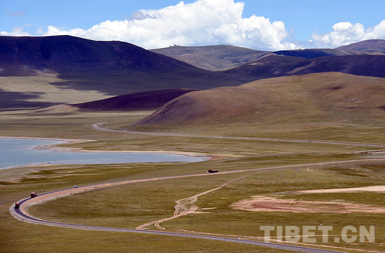 這是一條由牛羊馱隊蹄印演變而成的、通往申扎縣的平坦公路。如今的汽車運輸早已替代了過去的牛羊馱隊運輸(唐召明2017年6月24日攝)