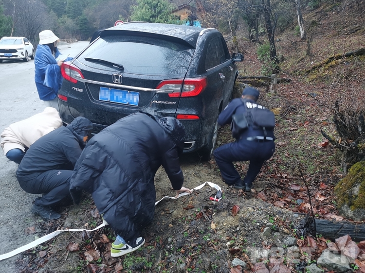“我們是第一次遇到這種情況,不知道怎么辦,只有請求你們幫助!”當(dāng)?shù)亟诮涤贻^多、道路濕滑,兩名廣東籍女游客在南伊風(fēng)景區(qū)內(nèi)游玩返回途中操作不慎,導(dǎo)致車輛發(fā)生側(cè)滑,撞在路邊石頭上,無法自行脫困。不熟悉當(dāng)?shù)厍闆r的游客,在雨中焦急無助,撥打報警求助。