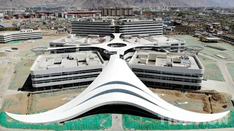 中國西藏網(wǎng)訊 挖掘機(jī)的轟鳴聲、鋼管的碰撞聲,走進(jìn)西藏自治區(qū)醫(yī)院項目施工現(xiàn)場,一派忙碌的景象。從空中俯瞰,建設(shè)中的西藏自治區(qū)醫(yī)院外形宛如一朵格?;?,目前正進(jìn)行室內(nèi)裝修和機(jī)電安裝。