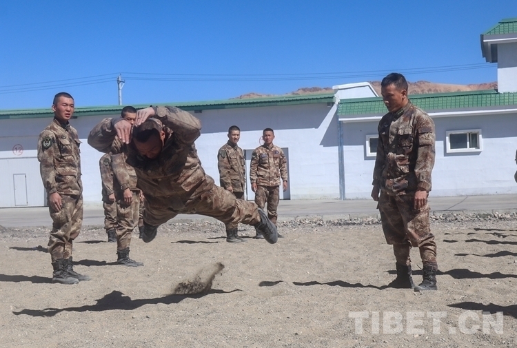 圖為阿里軍分區(qū)某部官兵進行倒功訓(xùn)練