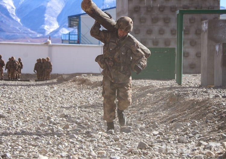圖為阿里軍分區(qū)某部官兵進行負重訓(xùn)練