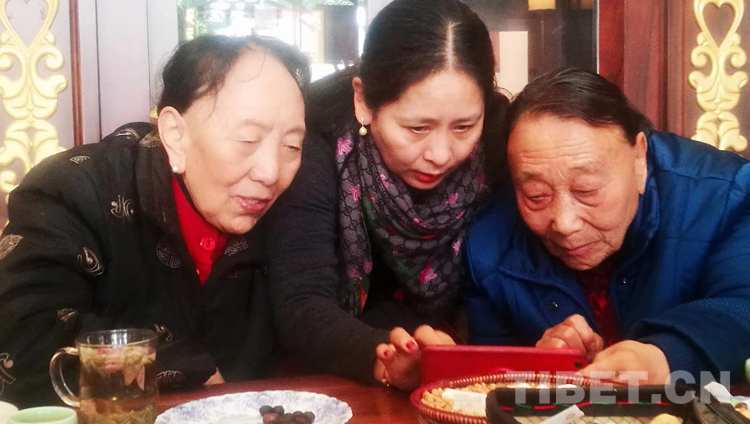 圖為扎西旺姆和原西藏自治區(qū)黨委副書記巴桑(右)、著名藏族歌唱家才旦卓瑪(左)在一起