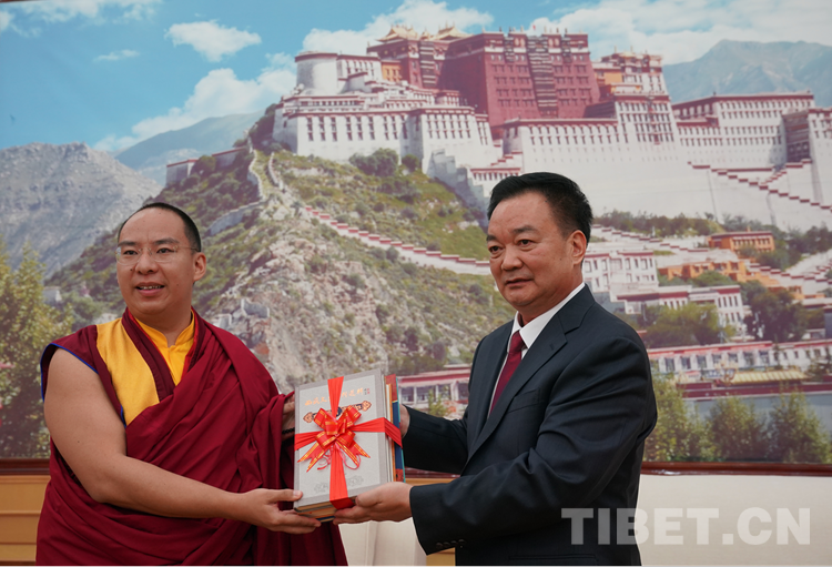 西藏自治區(qū)領(lǐng)導(dǎo)洛桑江村、莊嚴(yán)、陳永奇、嘎瑪澤登、達(dá)娃次仁、甲熱·洛桑丹增、珠康·土登克珠、薩龍·平拉、索朗仁增陪同會見。(中國西藏網(wǎng) 記者/王淑 拉姆)
