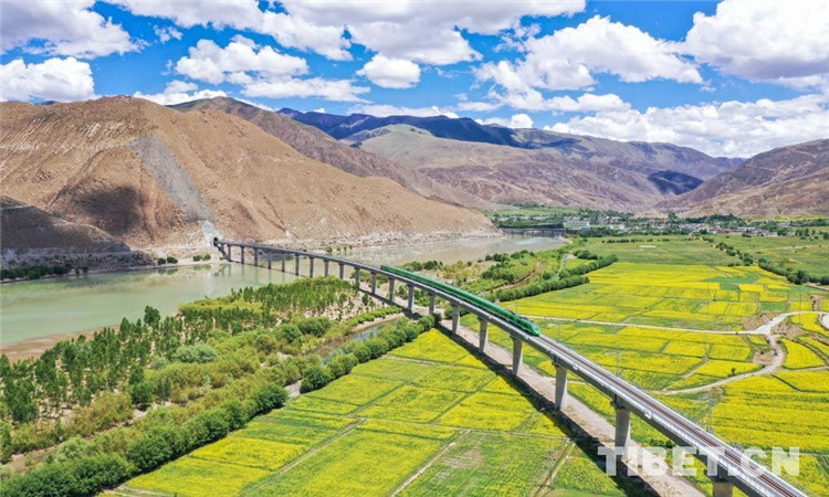 圖為飛馳在拉林鐵路上的“復(fù)興號(hào)”列車 攝影:趙耀