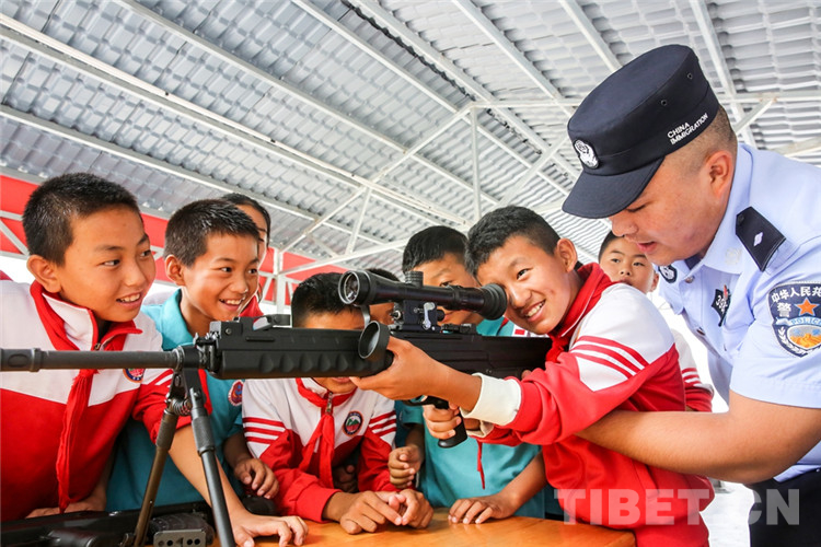 圖為背崩邊境派出所民警在執(zhí)勤點組織警營開放日活動