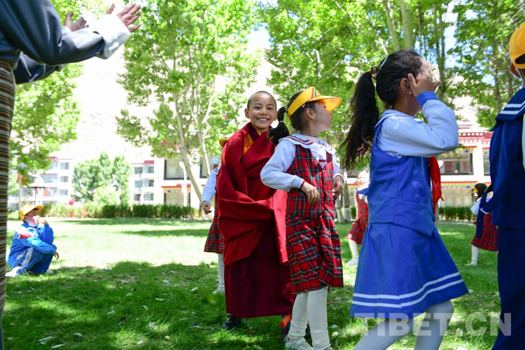 中國西藏網訊 6月1日,位于西藏自治區(qū)拉薩市曲水縣的西藏佛學院少年活佛小學班舉行慶“六一”系列活動。沐浴在黨的陽光雨露下茁壯成長成才的少年活佛們以愉悅的心情和一張張笑臉迎接屬于自己的節(jié)日。