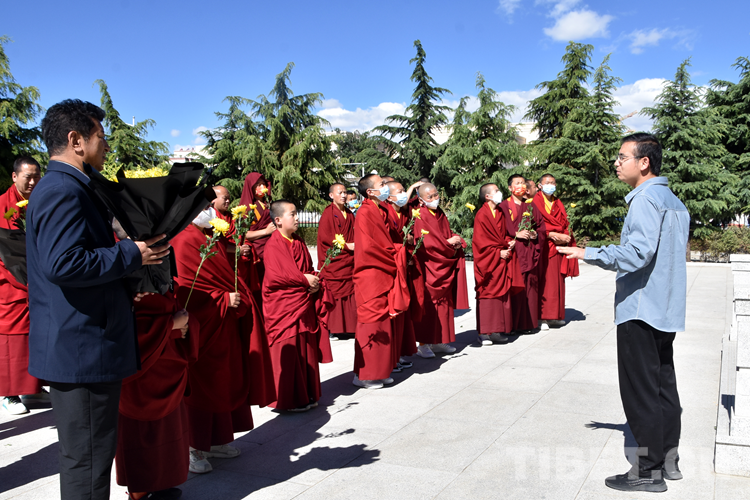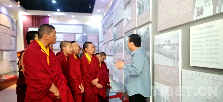 在譚冠三紀念園參觀時,少年活佛在譚冠三將軍陵墓前集體默哀并敬獻花朵,向革命先輩致以崇高敬意。隨后,在紀念園相關負責人的講解下認真傾聽譚冠三將軍扎根邊陲、艱苦奮斗的感人事跡。參觀期間,少年活佛們被一幅幅圖片、一個個生動故事深深吸引,對革命先烈和十八軍戰(zhàn)士在解放西藏、建設西藏中形成的“老西藏精神”有了更加深刻的領會。