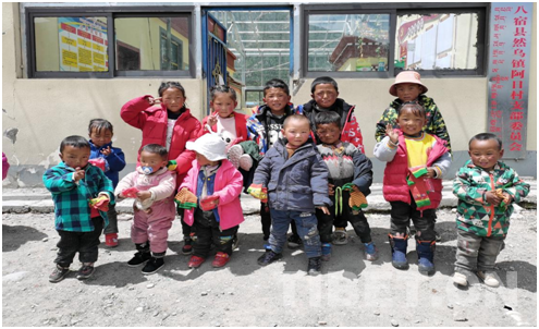 圖為兒童節(jié)當(dāng)天部分阿日村學(xué)齡前兒童收到了愛心人士的禮物
