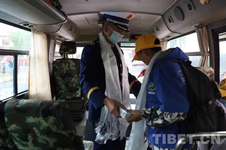 清晨6時30分,駕駛員對車輛進行消毒后,便駕駛到小學接送考生。中隊還特意準備了熱牛奶并分發(fā)給大家。愛心服務贏得了師生們的贊賞,他們?yōu)樯窒狸爢T獻上了哈達表示感謝。