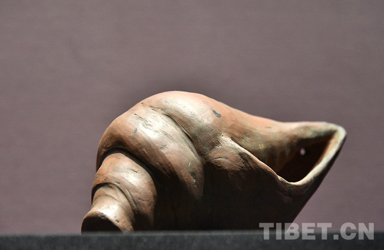 圖為西藏博物館里展陳的陶制海螺 攝影:王媛媛