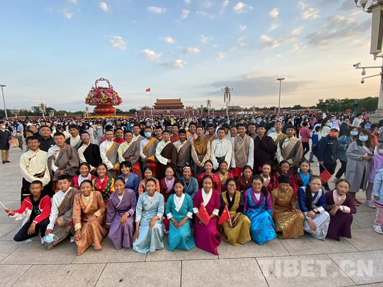 圖為2021年10月1日,拉薩市北京中學首屆“北京班”進京游學,參觀天安門廣場升旗儀式