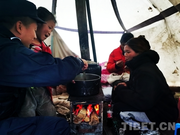 隨后,民警了解到小曲珍的家人上山挖蟲(chóng)草至今未歸,孩子一直在帳篷外等待家人。民警一邊安慰小曲珍,一邊幫助她生火燒飯,耐心地陪伴孩子度過(guò)焦急的等待。