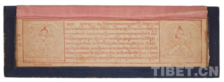 推崇藏傳佛教是清政府治理蒙藏地區(qū)的政治需要,同時(shí)也促進(jìn)了各民族文化的交流與交融。《大藏經(jīng)?甘珠爾》該版藏經(jīng)系清王室官刻本,纂輯、刻印都是由官方主持??淘?、裝幀頗為精良,版型較一般藏文經(jīng)大,每夾扉畫均為手工繪制,筆觸細(xì)膩,設(shè)色鮮麗,大多出自藏族畫家手筆,為佛教文化研究不可缺的資料??滴醯蹫榇擞H撰《御制番藏經(jīng)序》,序文稱,刊印本藏是為“廣崇大藏”。